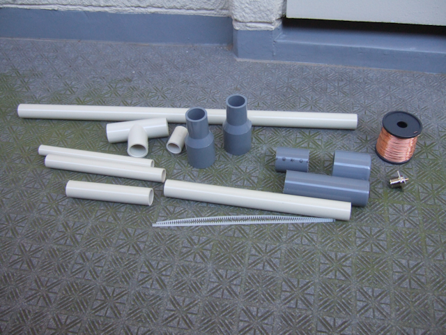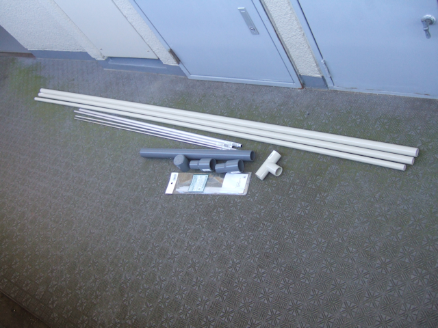 組み上がったものにアルミパイプのエレメントを挿し込んでベランダに設置。